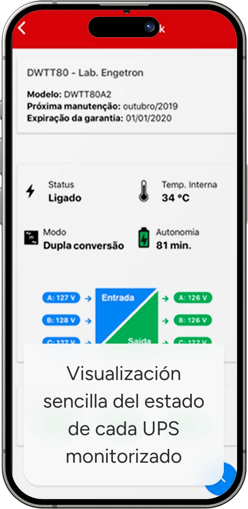 La tecnología del Sistema Engetron IoT abarca el hardware IoT presente en todo el portafolio de UPS/nobreaks de la marca, softwares, sensores y la App Engetron IoT. Este sistema permite diagnósticos e intervenciones remotas en tiempo real. Con ello, previene perjuicios, aumenta la disponibilidad de energía y reduce la necesidad de visitas presenciales para todos los tipos de mantenimiento.